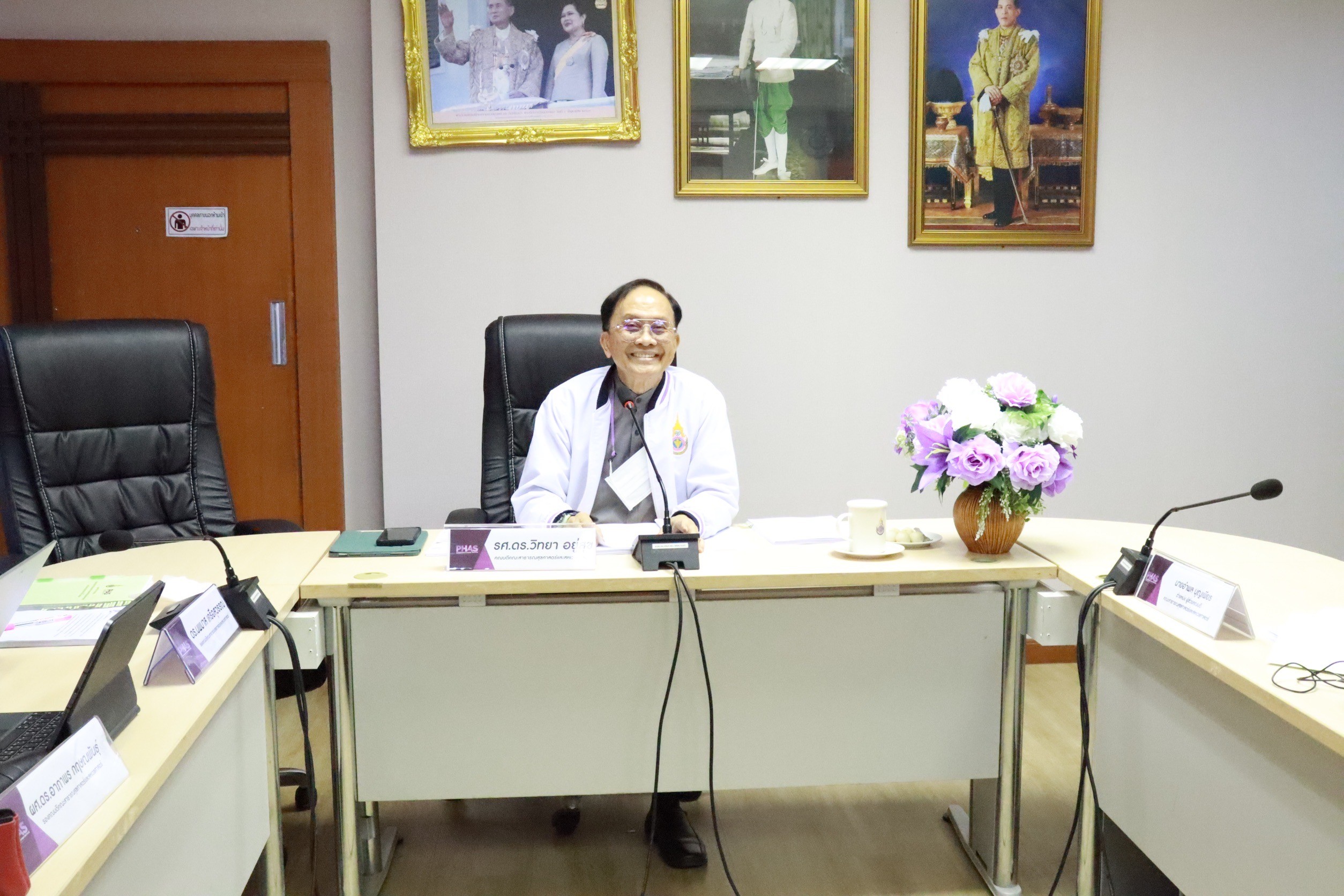 รองศาสตราจารย์ ดร.วิทยา อยู่สุข คณบดีคณะสาธารณสุขศาสตร์และสหวชศาสตร์ เป็นประธานในการประชุม คณะกรรมการประจำคณะสาธารณสุขศาสตร์และสหเวชศาสตร์ สถาบันพระบรมราชชนก ครั้งที่ 6/25677
