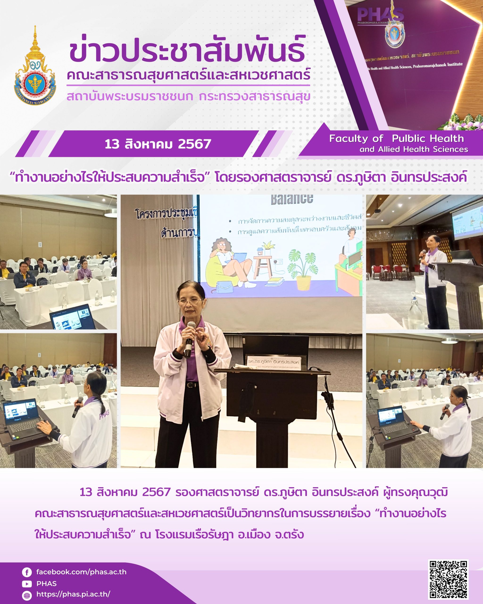 “ทำงานอย่างไรให้ประสบความสำเร็จ” โดยรองศาสตราจารย์ ดร.ภูษิตา อินทรประสงค์