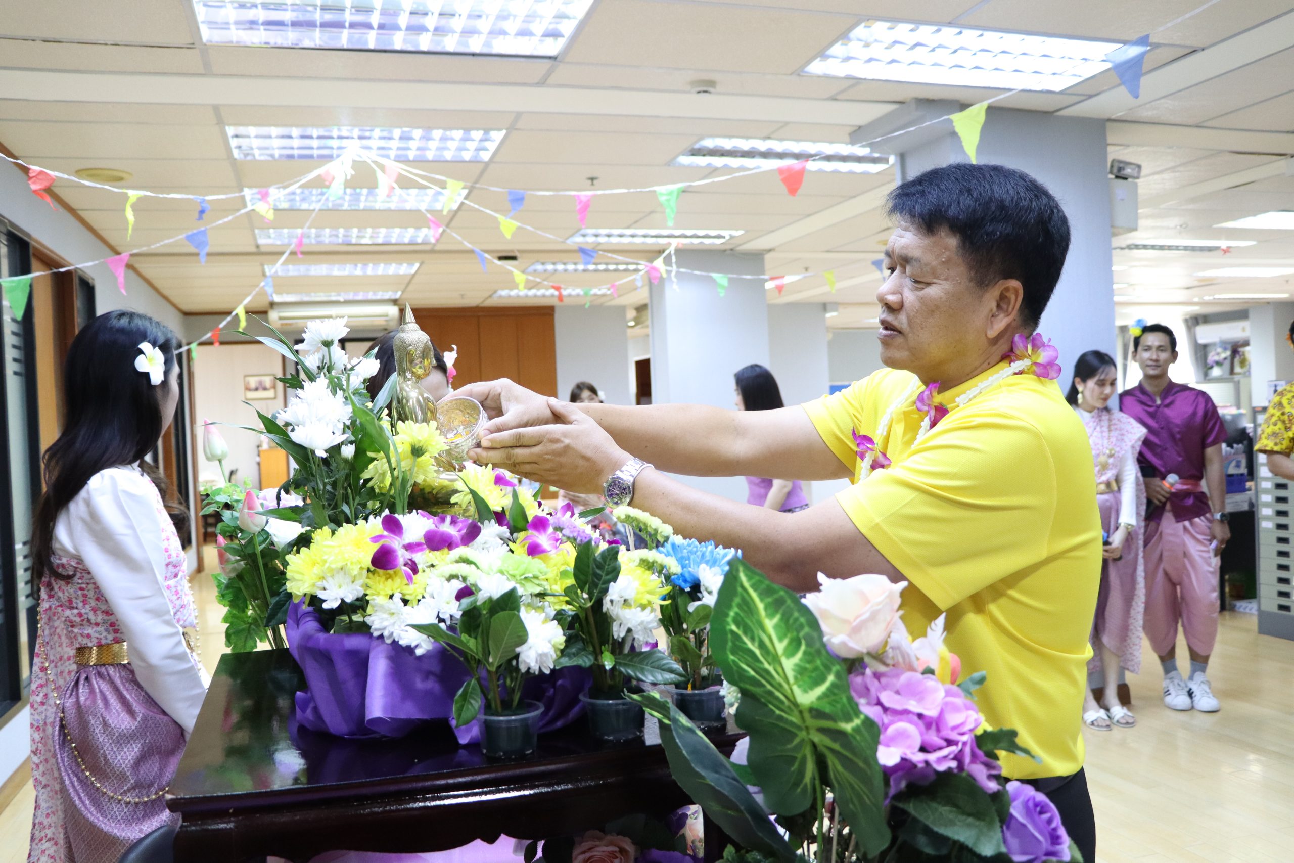 ผู้อำนวยการวิทยาลัย ผู้ช่วยคณบดี และบุคลากรร่วมสรงน้ำพระ และรดน้ำขอพรเพื่อความเป็นสิริมงคลร่วมกัน ณ สำนักงานคณบดี คณะสาธารณสุขศาสตร์และสหเวชศาสตร์ วิทยาลัยพยาบาลบรมราชชนนี จังหวัดนนทบุรี (วิทยาเขตบำราศนราดูร)