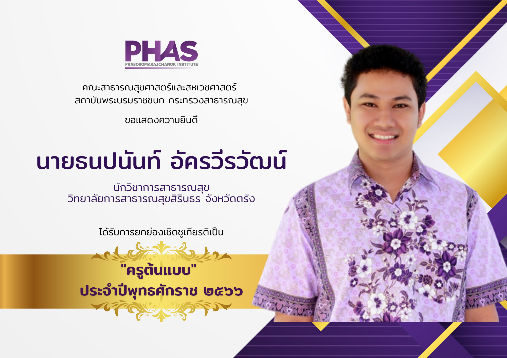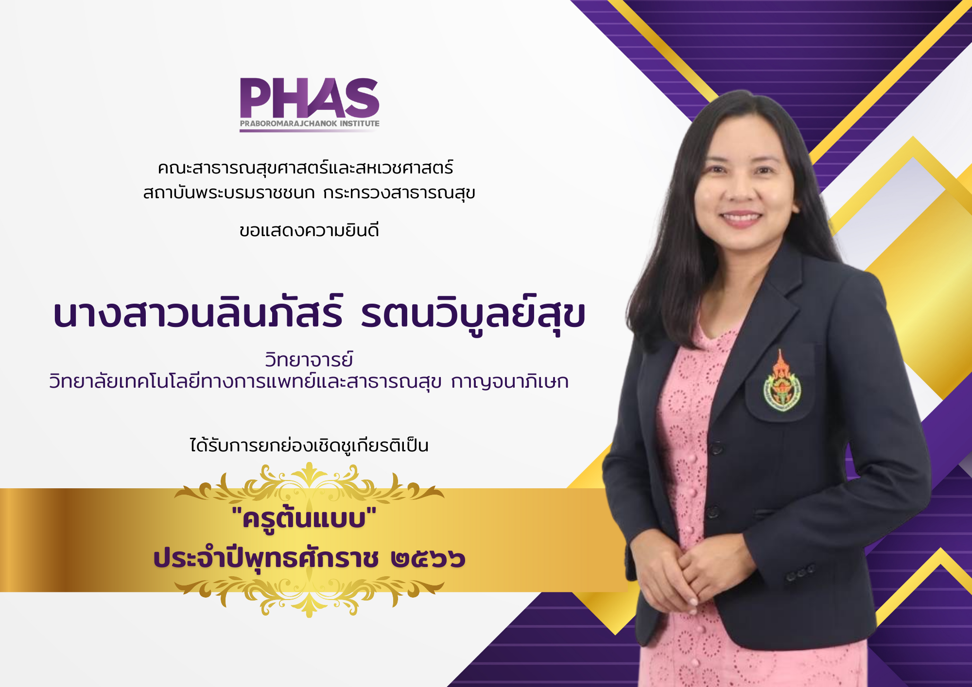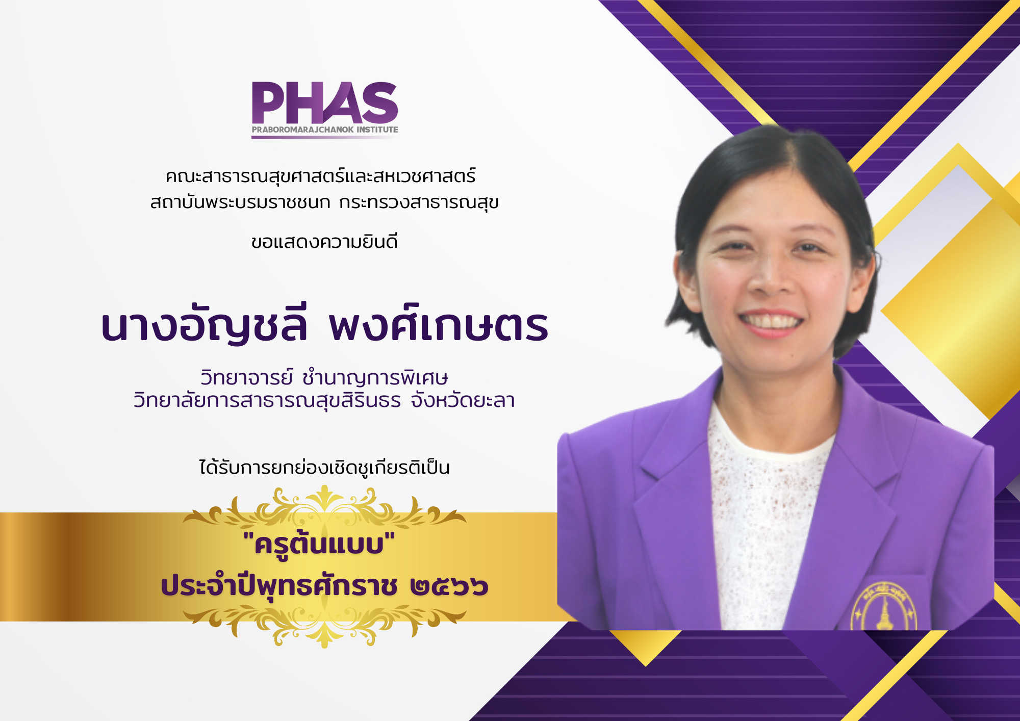 เพื่อยกย่องเชิดชูเกียรติคุณงามความดีของครู คณะสาธารณสุขศาสตร์และสหเวชศาสตร์ สถาบันพระบรมราชชนกได้จัดรางวัล “ครูต้นแบบ” แก่ครูของวิทยาลัยในสังกัดฯ เพื่อยกย่องเชิดเกียรติครูผู้เสียสละ ครูผู้ทุ่มเท เพื่อให้ศิษย์ได้รับการศึกษา และคุณภาพชีวิตที่ดี พร้อมเป็นเยาวชนที่มีคุณภาพ